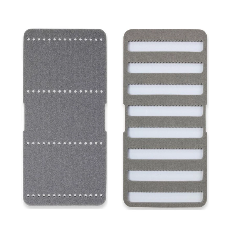 Streamers with long tails can be stored efficiently by simply pushing the hook bend into the slit guide and sliding it toward the tail.The straight slit foam design allows all hooks to be safely held and stowed in the foam, even on the largest modern multi-hook streamers.The design holds the foam by sandwiching it with slits, so the foam will not be damaged by the large streamer hooks.