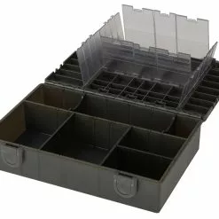 La gamme New Fox Tackle Box s’inspire du légendaire concept Fox F-Box, s’inspire du marché et d’une foule de nouvelles idées pour le remettre à jour et le remettre à sa place à la pointe de la conception de boîtes à pêche. En utilisant tout le couvercle comme rangement supplémentaire pour le matériel d’extrémité, nous avons maximisé la capacité tout en gardant la boîte aussi compacte que possible. Le couvercle comprend 37 compartiments individuels, dotés de charnières goupillées améliorées et de fermetures teintées fumées qui permettent de voir les produits à l’intérieur. De plus, une feuille d’autocollants est fournie pour étiqueter le contenu pour une identification rapide si vous en avez besoin.Lorsqu’il est ouvert, le couvercle s’arrête à exactement 180 degrés, ce qui facilite l’attache des plates-formes avec votre boîte à pêche sur vos genoux. car vous pouvez utiliser l’intérieur du couvercle comme zone de travail. Le couvercle comporte également une règle à l’intérieur et à l’extérieur pour faciliter le montage.La base de la boîte à outils a été conçue pour accueillir les toutes nouvelles boîtes à compartiments internes standard et XL, les boîtes à compartiments réglables , Hook Boxes plus les ingénieux Leader Racks en Standard et XL. La boîte comprend 3 séparateurs longs, 2 courts et 1 moyen. Ceux-ci sont amovibles et séparent la base et vous permettent de personnaliser selon votre configuration préférée. L’espacement des fentes de séparation a été soigneusement étudié pour tirer le meilleur parti de l’espace disponible, en veillant à ce que les boîtes à compartiments internes ne bougent pas dans l’espace perdu et gardent toutes sortes d’accessoires d’extrémité sécurisés efficacement. Tout, des outils de montage et des bobines de bas de ligne standard aux bobines de style leader plus grandes, peut parfaitement tenir dans cette boîte. de tout matériel de pêche si l’intérieur est mouillé.Fourni avec 2 grands séparateurs, 2 petits séparateurs, 1 séparateur séparateur et 1 x horizontalPack d’autocollants