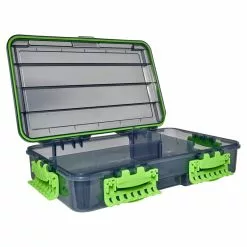 Boîte étanche Gunki – Flotteur & Big Bait est une boîte profonde avec des séparateurs réglables qui peuvent être configurés en fonction de votre kit. Sécurisé par quatre clips fiables et conçu pour retenir un maximum de matériel. Idéal pour les gros leurres et ces pièces d’équipement supplémentaires que vous transportez au cas où. Le joint étanche garantit que la boîte flotte si elle tombe dans l’eau. Parfait pour les pêcheurs en float tube et en bateau !Dimensionneur : 35,5 x 22 x 8