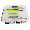La plus grande boîte de matériel de pêche Lurefans avec 4 séparateurs permanents permet 4 à 24 compartiments. Il est doté de loquets verts en plastique transparent, robustes mais faciles à ouvrir, et est livré avec des séparateurs Snap-Apart afin que vous puissiez personnaliser votre coffre à pêche comme vous le souhaitez.Dimensions : 14” x 9” x 2” (35,56 x 22,86 x 5,08 cm)Lure Lock apporte de la valeur et de l’innovation à la catégorie de stockage de matériel de pêche avec son Made-In- Boîtes moulées injectées en polypropylène pur à 100 % The-USA et loquets verts fluorescents attrayants. Les étuis sans gel sont idéaux pour les pêcheurs qui cherchent à ranger leurs appâts en plastique souple dans des étuis, plutôt que dans leur emballage d’origine.