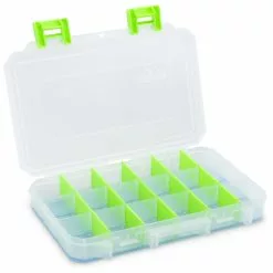 La plus grande boîte de matériel de pêche Lurefans avec la technologie TakLogic et des séparateurs permanents en option crée trois compartiments. Il est doté de loquets verts en plastique transparent, robustes mais faciles à ouvrir, et est livré avec des séparateurs Snap-Apart afin que vous puissiez personnaliser votre boîte à pêche comme vous le souhaitez. La technologie TakLogic est sans parfum, respectueuse de l’environnement et protégera vos leurres, appâts, plombs, hameçons et matériel terminal.Dimensions : 11” x 7 1/4” x 1 3/4” (27,94 x 18,41 x 4,44 cm)Stockez votre boîte Lure Lock horizontalement pour utiliser le plein potentiel de la technologie TAK . La gravité activera le temps de libération du TAK.La technologie TakLogic maintient et berce les leurres de pêche, les hameçons et le matériel de pêche terminal dans un environnement doux et sûr, le verrouillant en place tout en empêchant les vibrations et les mouvements d’émousser le crochets, barbes, peinture et même l’efficacité globale du leurre lui-même.Notre technologie TakLogic est sûre et formulée à partir d’une recette à base de soja que nous produisons en interne dans notre usine du Wisconsin. Il est fabriqué à partir de ressources renouvelables.