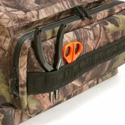 La doublure intérieure utilise une bâche et le sac comporte des fermetures éclair résistantes à l’eau pour une meilleure résistance à l’eau. Un sac polyvalent à saveur militaire.Fermetures éclair résistantes à l’eauDaisy chain à l’avantImprimé camouflage Taille: 410mm × 270mm × 240 mm(Remarque : Il n’inclut pas la boîte à lunch Lunker ni les accessoires illustrés tels que les pinces).