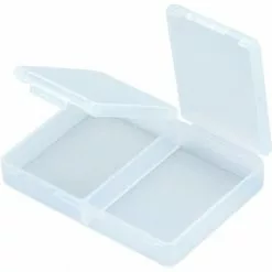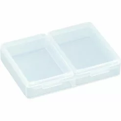 Petite boîte de Meiho avec compartiments séparés. L’étui à mini-compartiments Meiho Rectangle FB-2 est un récipient en plastique transparent qui comprend 2 petits compartiments de rangement avec des couvercles à charnière individuels attachés. • Dimension: 94x71x19