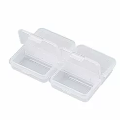 Boîte intelligente et flexible de Meiho avec 4 compartiments séparés. Le boîtier à mini-compartiments Meiho Rectangle FB-4 est un récipient en plastique transparent qui comprend 4 petits compartiments de rangement avec des couvercles à charnière individuels attachés. Ces petits compartiments peuvent être utilisés pour ranger tous les hameçons, poids ou petits articles de pêche qui pourraient flotter au fond de votre boîte à articles.• Dimensions: 95x68x18