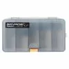Ces boîtes à mouches minces sont disponibles en deux configurations. Les boîtes à mouches Super Slim Vest contiennent 120 mouches dans une mousse de référence découpée. Huit rangées, 15 emplacements. Ou 8 compartiments avec base magnétique. Recommandé pour les nymphes et les mouches sèches peu piquées ou parachute jusqu’à la taille 16. Mouches non incluses.