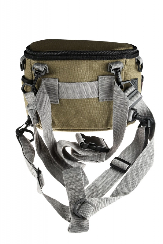 Peut aussi être porté comme sac banane. Taille 25 x 15 x 20 cm.