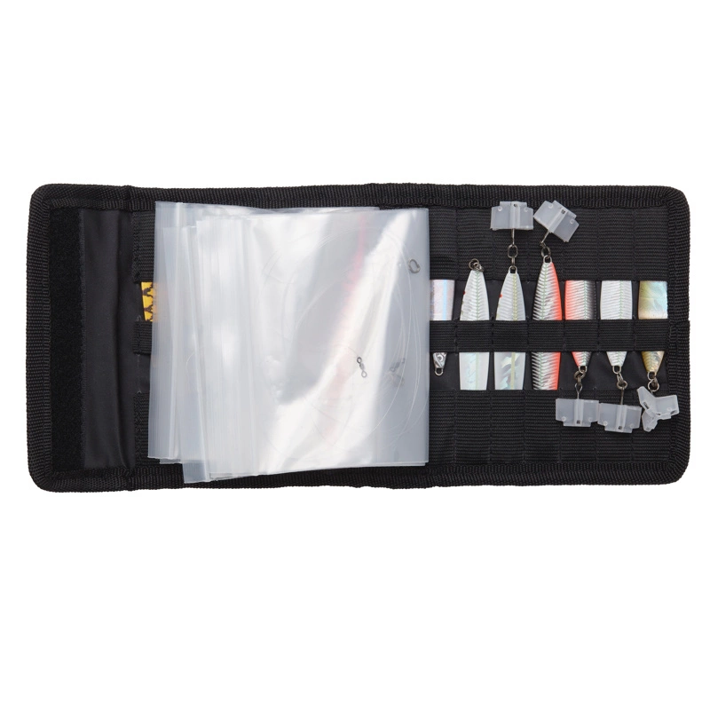 Portefeuille Savage Gear Pocket Flip pour votre ligne à travers les leurres. Fabriqué à partir de tissu doux et durable 600 deniers avec doublure intérieure et séparateurs élastiques. 8 sacs amovibles à fermeture éclair pour ligne pré-montée à travers des leurres ou des traces, avec 8 protecteurs d’hameçons aigus, pour les tailles #8-5 hameçons aigus. Conçu pour s’adapter parfaitement à vos cuissardes ou à votre veste !Veuillez noter : Les appâts montrés sur les photos ne sont pas inclus.