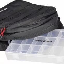 Il y a aussi des porte-pinces, un anneau en D et des poches latérales. Une boîte à appâts aux dimensions 27,5 x 18 x 4,2 cm est incluse, vous n’avez donc qu’à remplir d’appâts et aller pêcher !