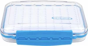AQUA MEDIUM a deux sections distinctes avec des mousses identiques particulièrement adaptées aux mouches de petite et moyenne taille. Le couvercle en plastique transparent de l’autre côté est décoré du motif Vision fishcamo.